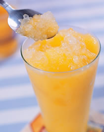 做法: 1.將芒果洗淨後去皮後切成小丁狀。 2.放入保鮮盒冷凍半天以上,即成為芒果肉凍。 3.取做法2的芒果肉凍與土芒果汁、果糖、冰塊一起放入果汁機中攪打約15~20秒即可。